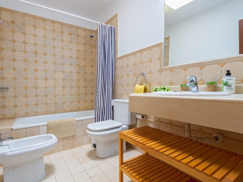 There are patio doors out to the terrace with a stylish dining table and sun loungers. There is even a special seating area at the far end where you can gaze out to sea whilst having your pre dinner cocktail.