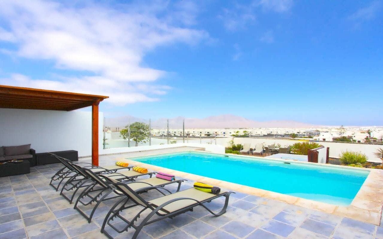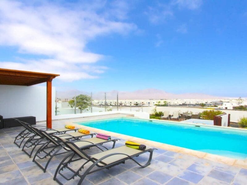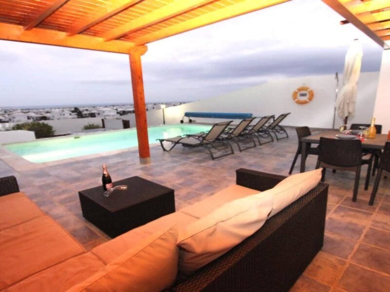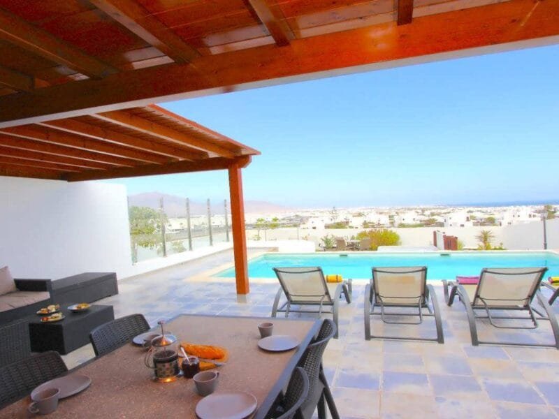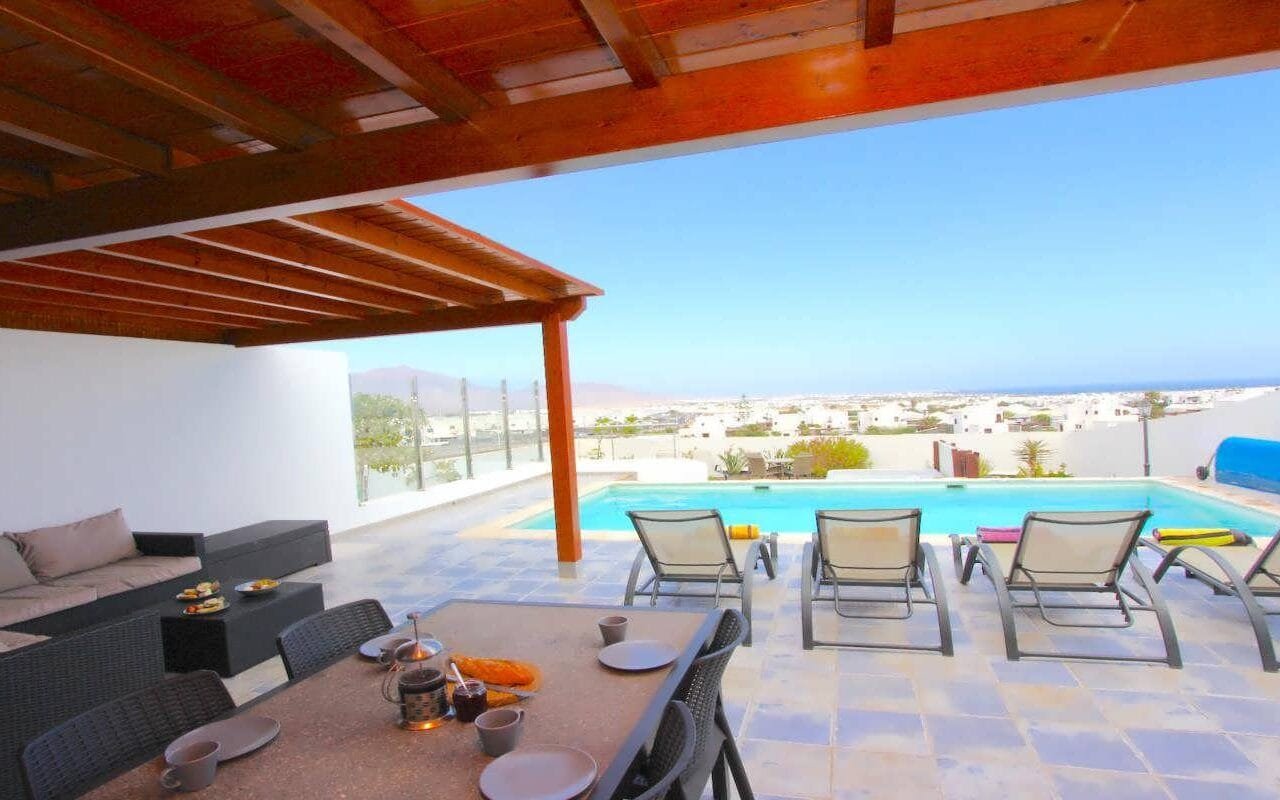 This lovely Vacation Rental Home is set in an elevated position on the side of Montana Roja it has fabulous views over Playa Blanca to the Femes mountains and across the ocean.