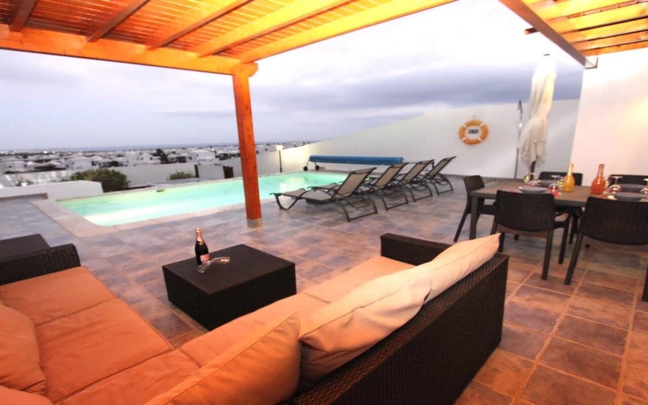 In the garden there is a decked area where you can enjoy alfresco-dining whilst watching darkness fall over Playa Blanca and the lights twinkling.