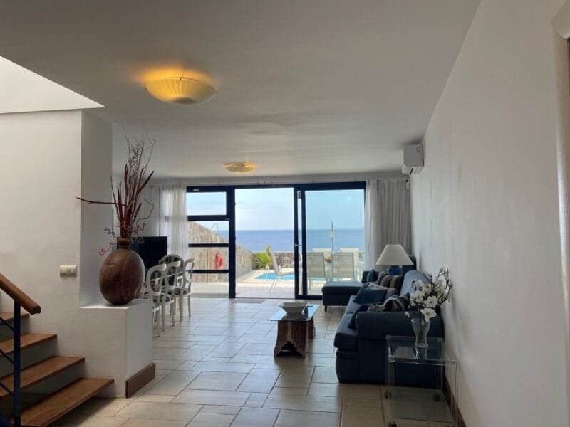 Nestled in the sought-after area of Puerto Calero, this stunning three-bedroom townhouse. Ocean Oasis, offers an exceptional retreat with unmatched panoramic views of the ocean and some of the best views of the neighbouring island of Fuerteventura. . Luxurious living spans three spacious levels in this sleek and modern home. Decorated with soothing neutral tones and light pastels that capture the natural light of the island.