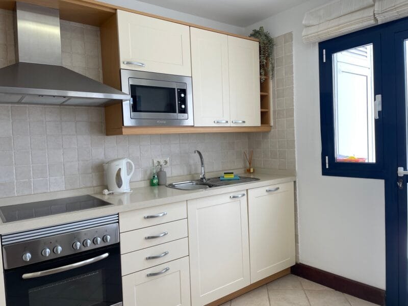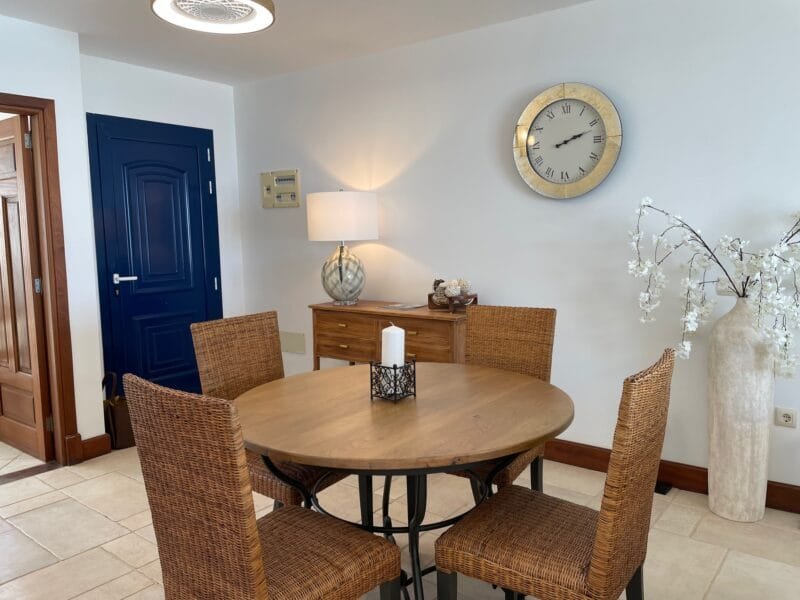 The accommodation comprises an open plan living/ dining area with two comfortable sofas and a smart TV with channels galore in multiple languages.