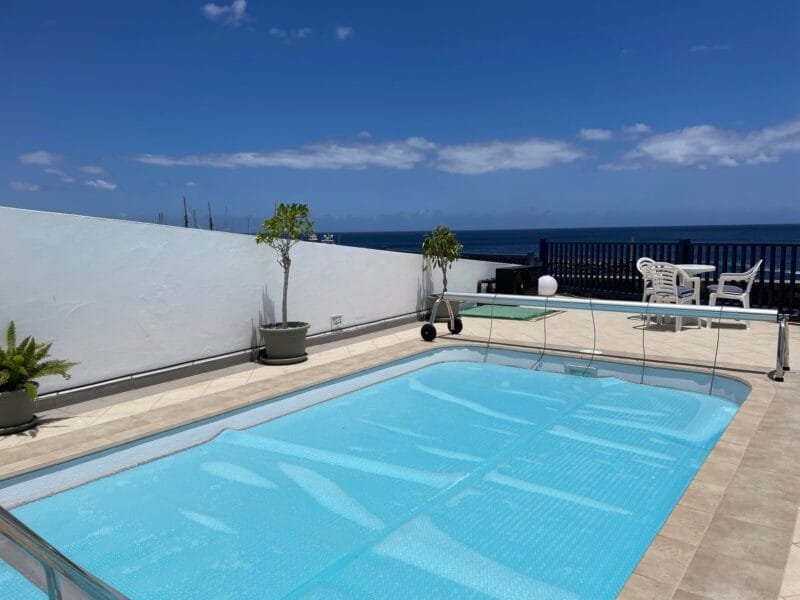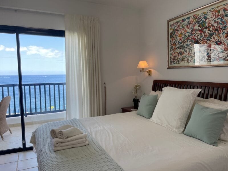 The master bedroom has a super king size bed, ensuite bathroom and a wonderful balcony with stunning views over the pool and the ocean beyond.