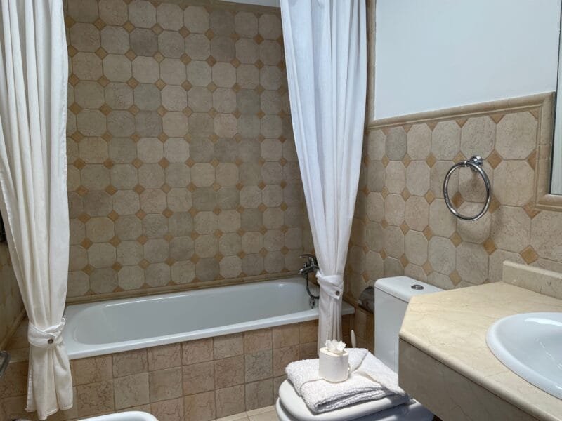 The second bedroom has two single beds, but could be made up as one double on request. There is a small balcony with table & chairs off this room and a shower room next door.